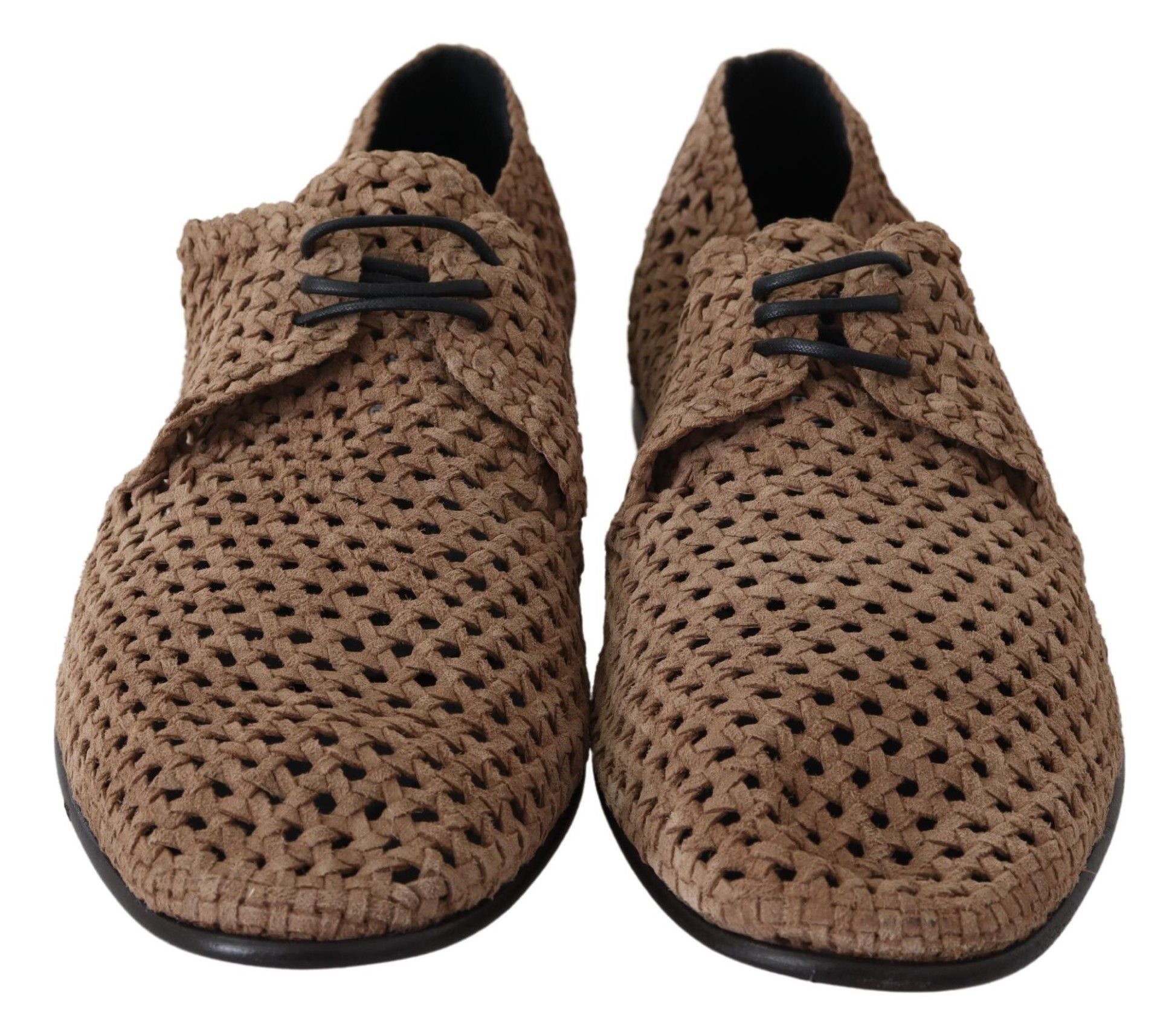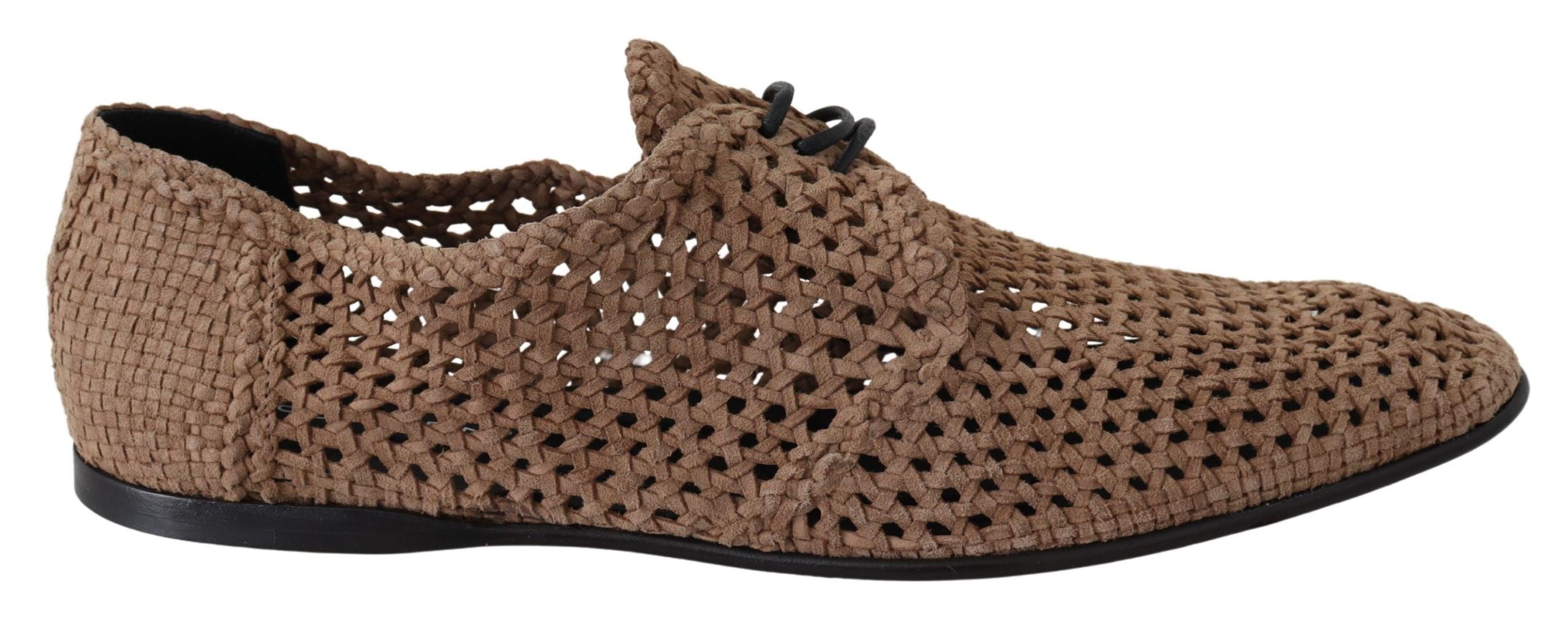 Discover the epitome of luxury footwear with these stunning beige suede Derby loafers by Dolce & Gabbana. Exquisitely crafted from premium goat skin capra suede, these loafers boast a sleek design perfected with a leather sole and discreet logo details. A tribute to Italian craftsmanship, these shoes are a must-have for any fashion connoisseur.