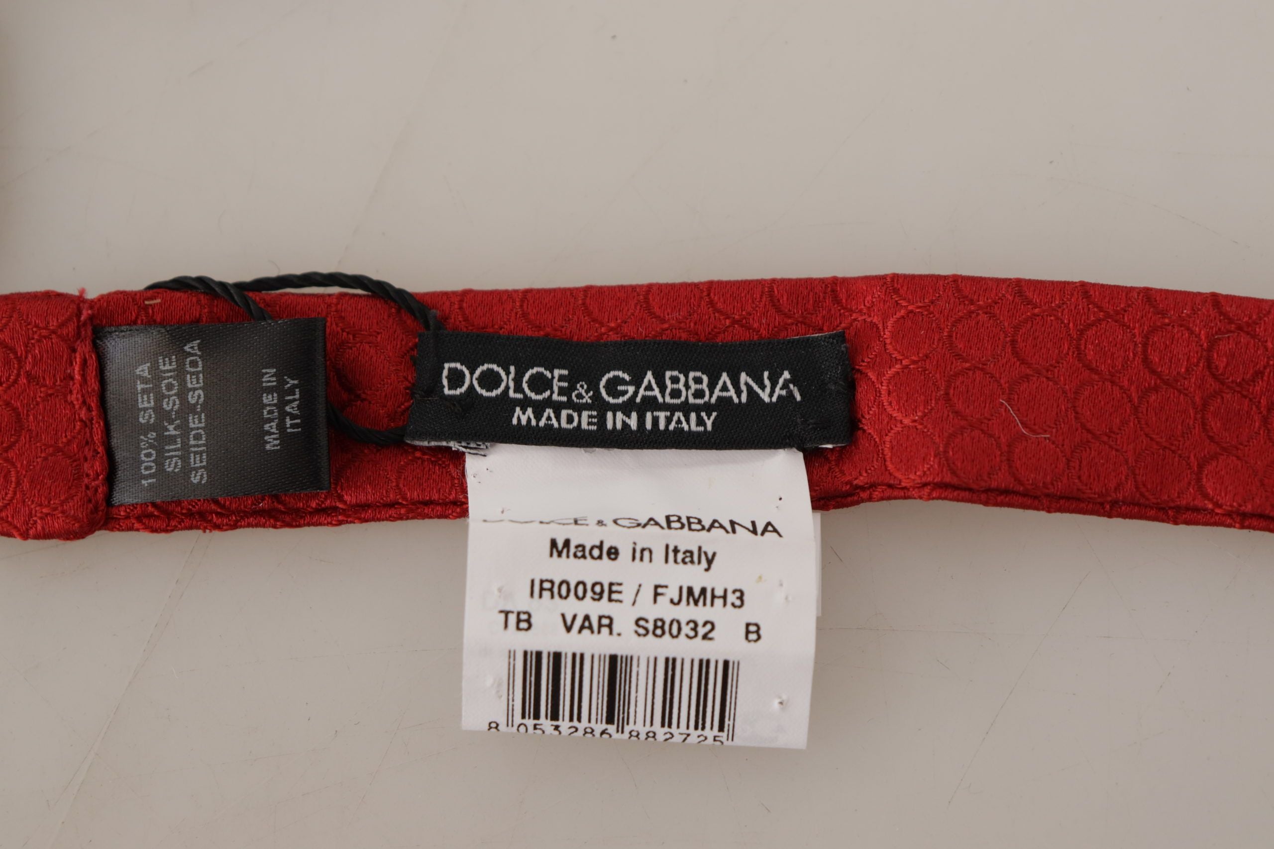Step up your evening wear with this absolutely stunning, 100% authentic Dolce & Gabbana bow tie. Crafted from luxurious 100% silk, this eye-catching red bow tie adds a touch of grandeur to any formal outfit. Designed to make a sophisticated statement, it features an adjustable neck strap ensuring a perfect fit for any special occasion. Made with the excellence of Italian craftsmanship, it’s the epitome of style and elegance.