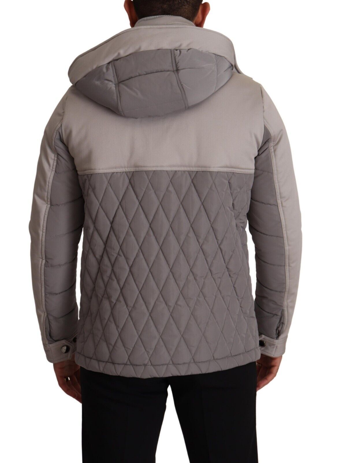 Step into the season with style in this chic and versatile windbreaker jacket by Dolce & Gabbana. Perfect for transitioning weather, it boasts a detachable hood, concealed front fastening, and long sleeves to keep you comfortably stylish. Discover the convenience of four external pockets and enjoy the refined touch of logo details. Crafted with high-quality materials in Italy, this jacket is a must-have for those who appreciate luxury and practicality.