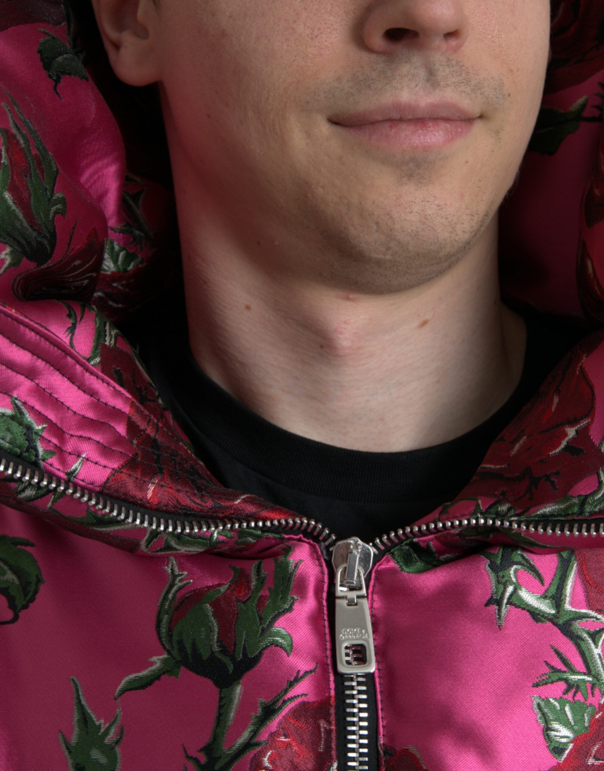 Indulge in the opulence of Dolce & Gabbana with this absolutely stunning quilted jacket. A true embodiment of brand’s impeccable flair for design, this piece is a fashion connoisseur’s dream with its luxurious rose print, padded comfort, and practical hood. The full zip fastening, long sleeves, and zipped pockets all add a touch of functionality to the elegance.