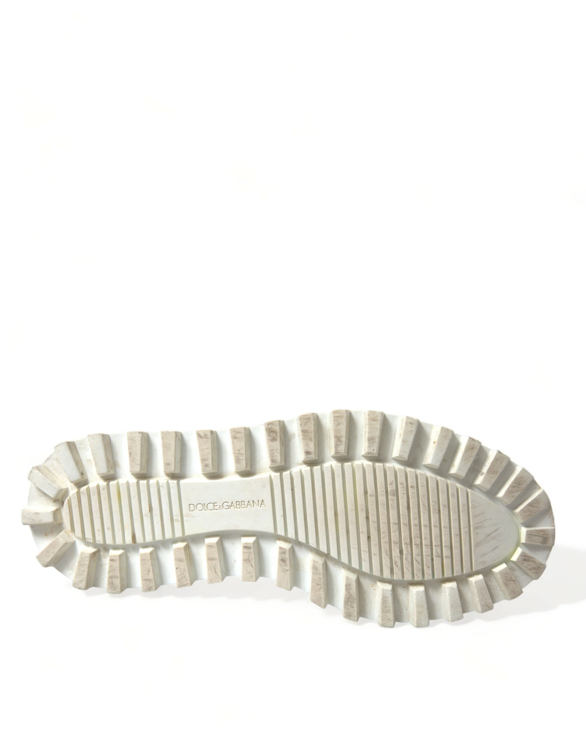 Step into style with these immaculate white Italian ankle boots, a testament to the unrivaled craftsmanship of Dolce & Gabbana. Ideal for the adventurous and fashion-forward spirits, these boots flaunt a robust ridged rubber sole designed for superior traction. The round toe and ankle length design, coupled with the iconic logo details, encapsulate luxury trekking wear at its finest.